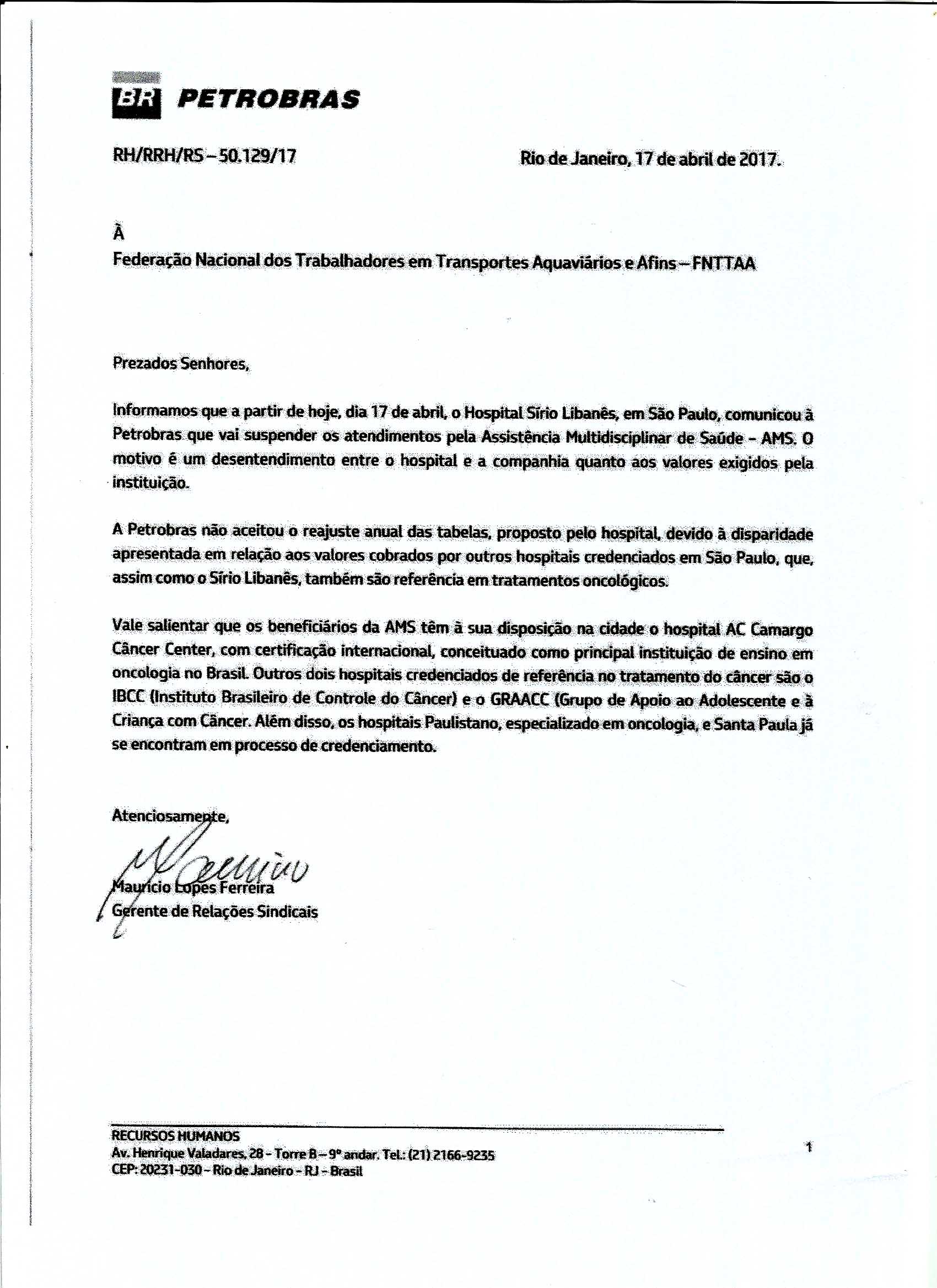 Mensagem Circular CONTTMAF - Petrobras e Transpetro No 14/2023 Rio de Janeiro, 24 de agosto de 2023.