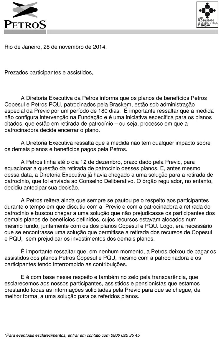 a Diretoria Executiva da Petros vem esclarecer alguns pontos
