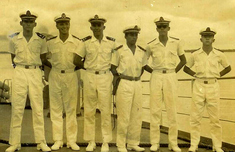 ( EFOMM) Escola de Formação de Oficiais da Marinha Mercante - Curso de Adpatação Naval - 1981 . Da esquerda para a direita : Eduardo, Collyer , Pasini , Borges, Davila e Santos.