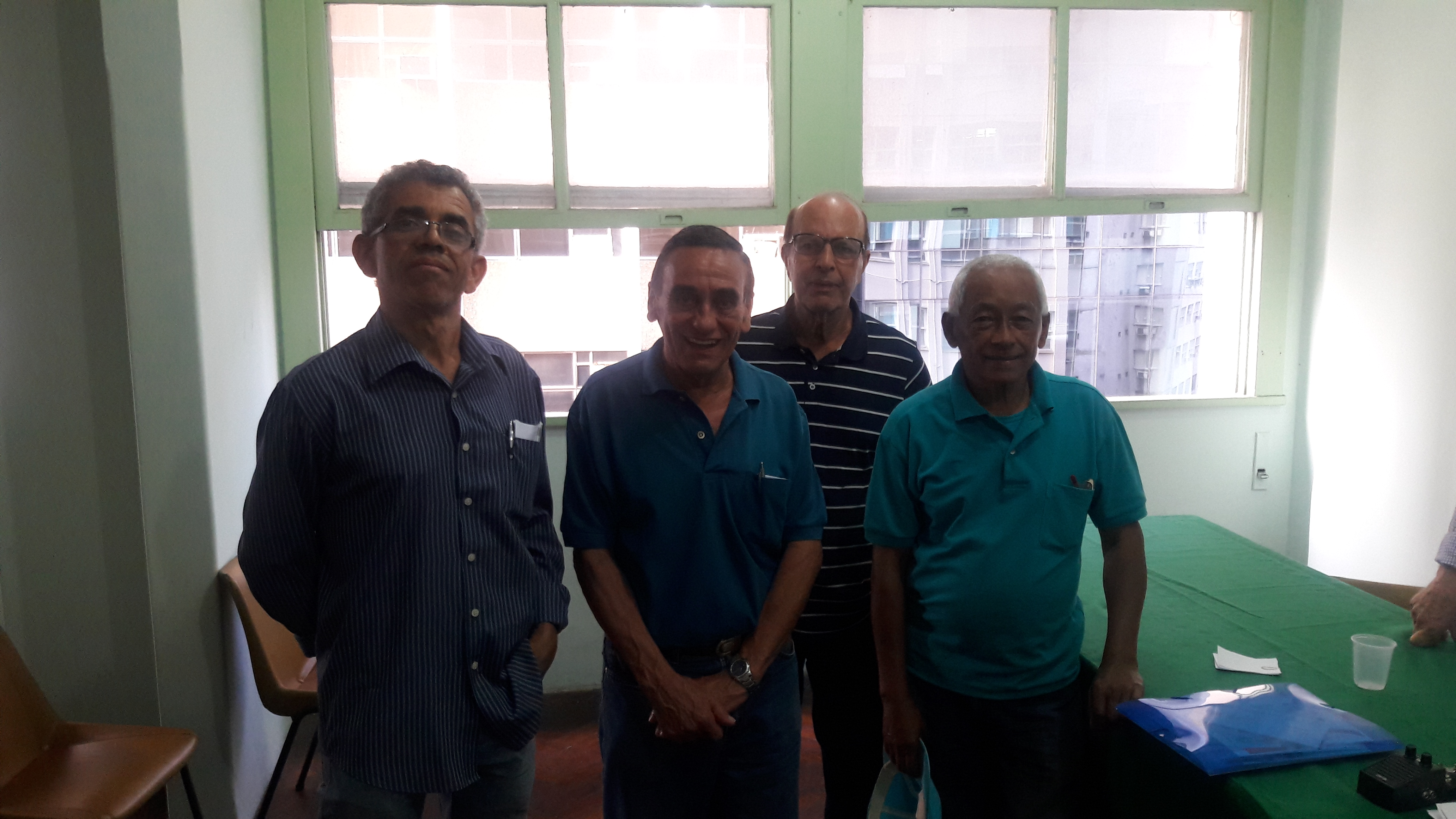Da esquerda para a direita: (Elias) Martins de Santana - Segundo Oficial de Radiocomunicações - Secretário do Sindicato Nacional dos Oficiais de Radiocomunicações da Marinha Mercante, ao seu lado o Segundo Radiotelegrafista José (Marçal) de Oliveira operador da antiga Estação Costeira Rio Rádio - PPR, ao seu lado, o Primeiro Oficial de Radiocomunicações Alfredo (Pontes), e por derradeiro o Primeiro Oficial de Radiocomunicações e Oficial de Náutica - (Bartolomeu) Gomes Patrício.