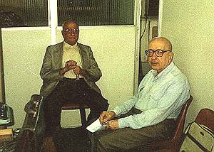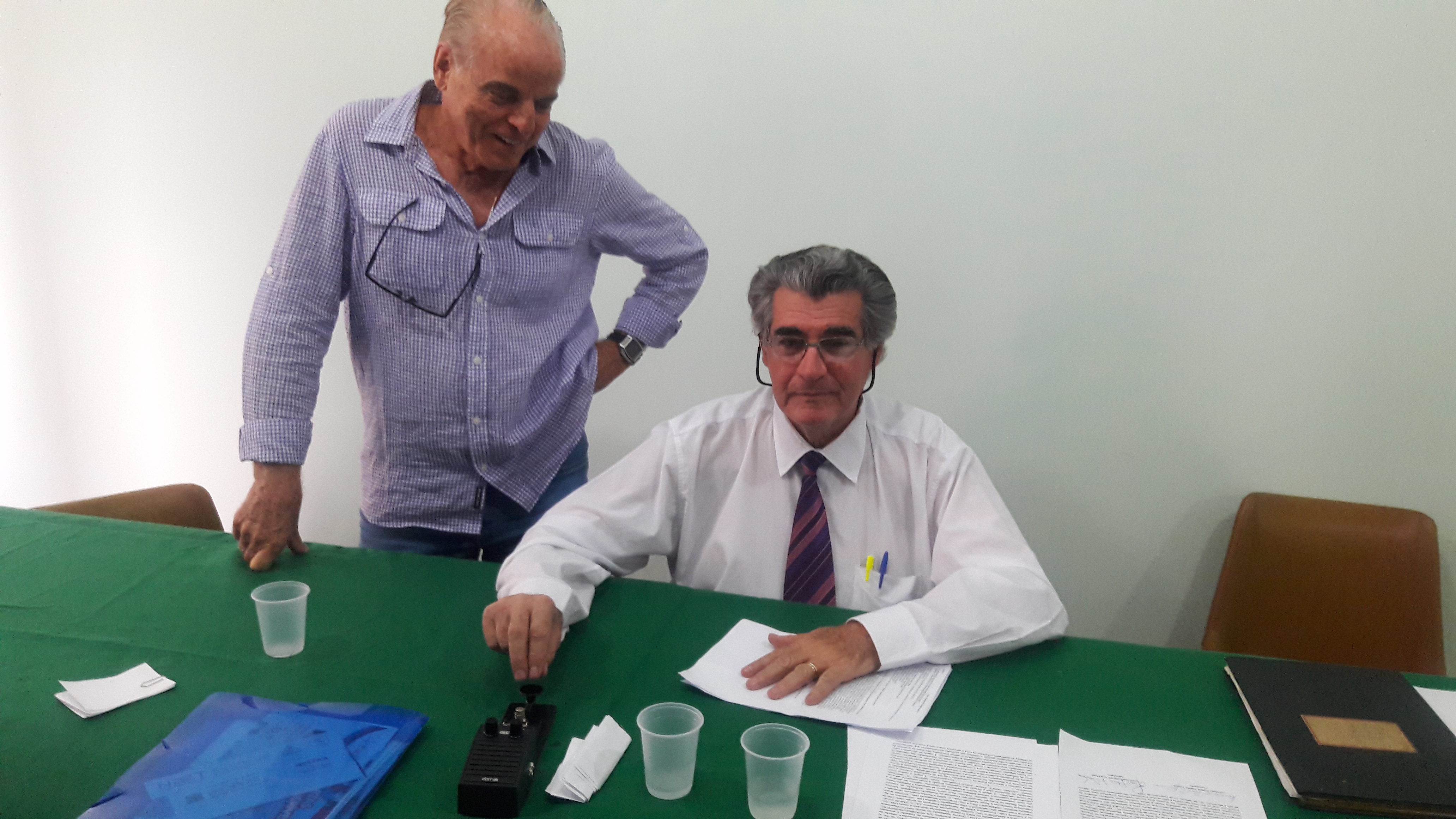 Da esquerda para a direita: O saudoso Primeiro Oficial de Radiocomunicações - João Hamaty ( Ex-Combatente da 2º Grande Guerra Mundial ) e a direita o Saudoso Primeiro Oficial de Radiocomunicações David Aguiar Lima, ( Ex-combatente da 2º Grande Guerra Mundial ) , e ex- Professor de Eletrônica Naval do Sindradio e ex redator da Revista Eletrônica Popular.