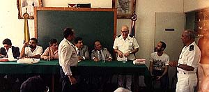 Reunião da Diretoria do Sindradio. Ao centro da mesa, o Presidente do Sindradio - Luciano( Ponce), presidindo uma reunião entre oficiais e diretores de outros Sindicatos.